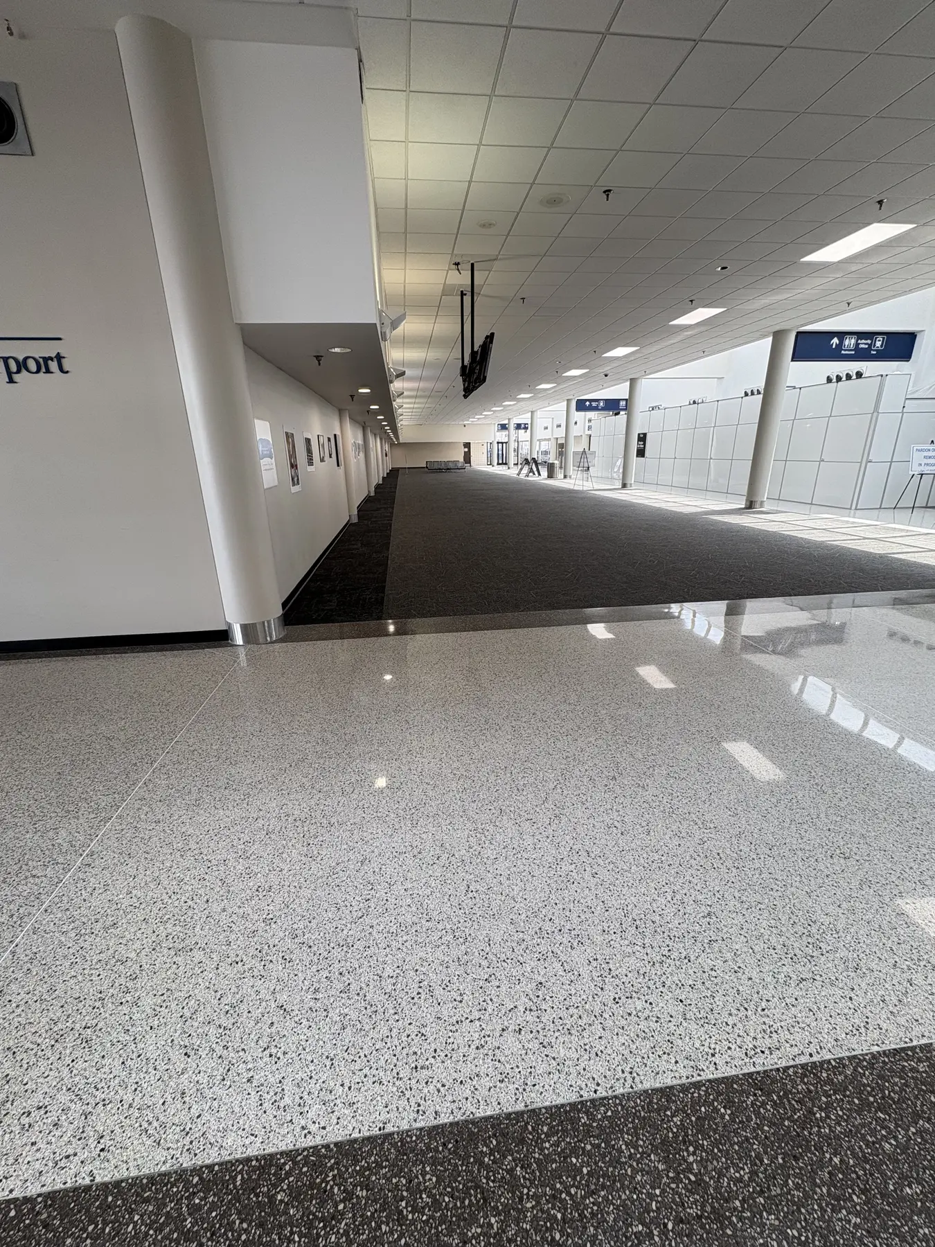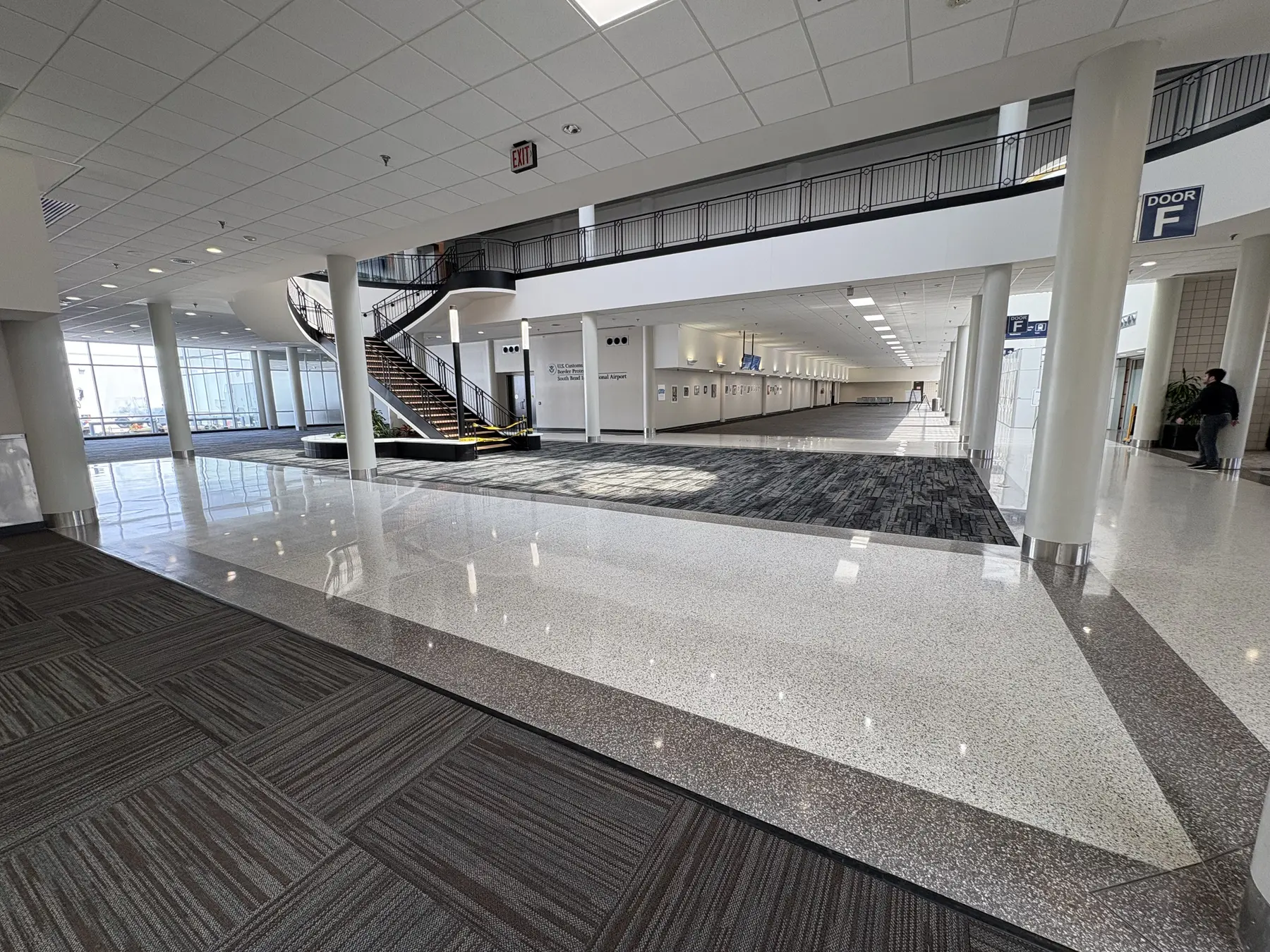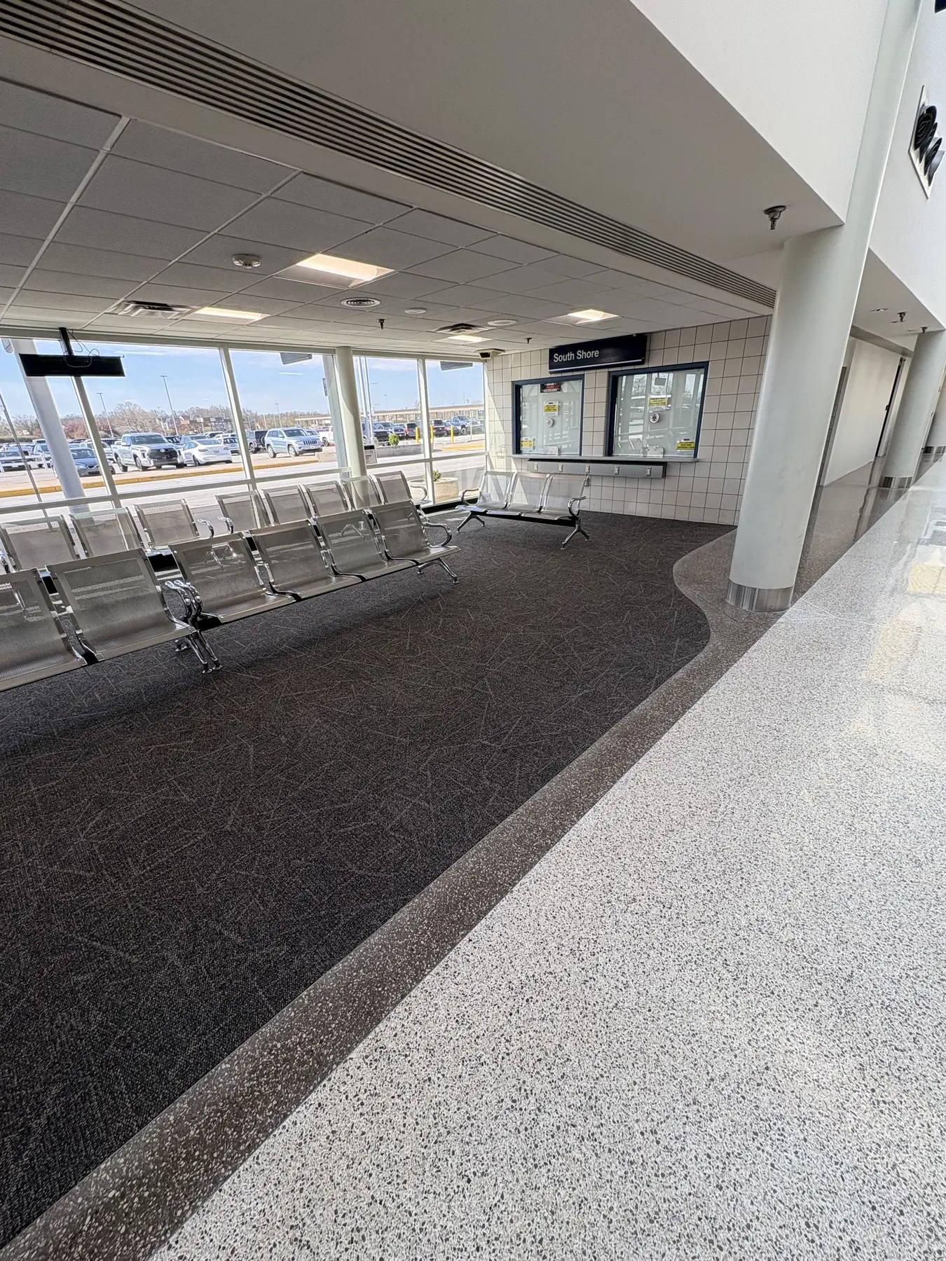 Our team replaced 13,500 SF of flooring, installing a beautiful mix of new terrazzo and carpet tile. This was a phased construction project, requiring close coordination with multiple trade partners and airport personnel. Throughout the process, we prioritized keeping access routes clear for the traveling public and ensuring minimal disruption.