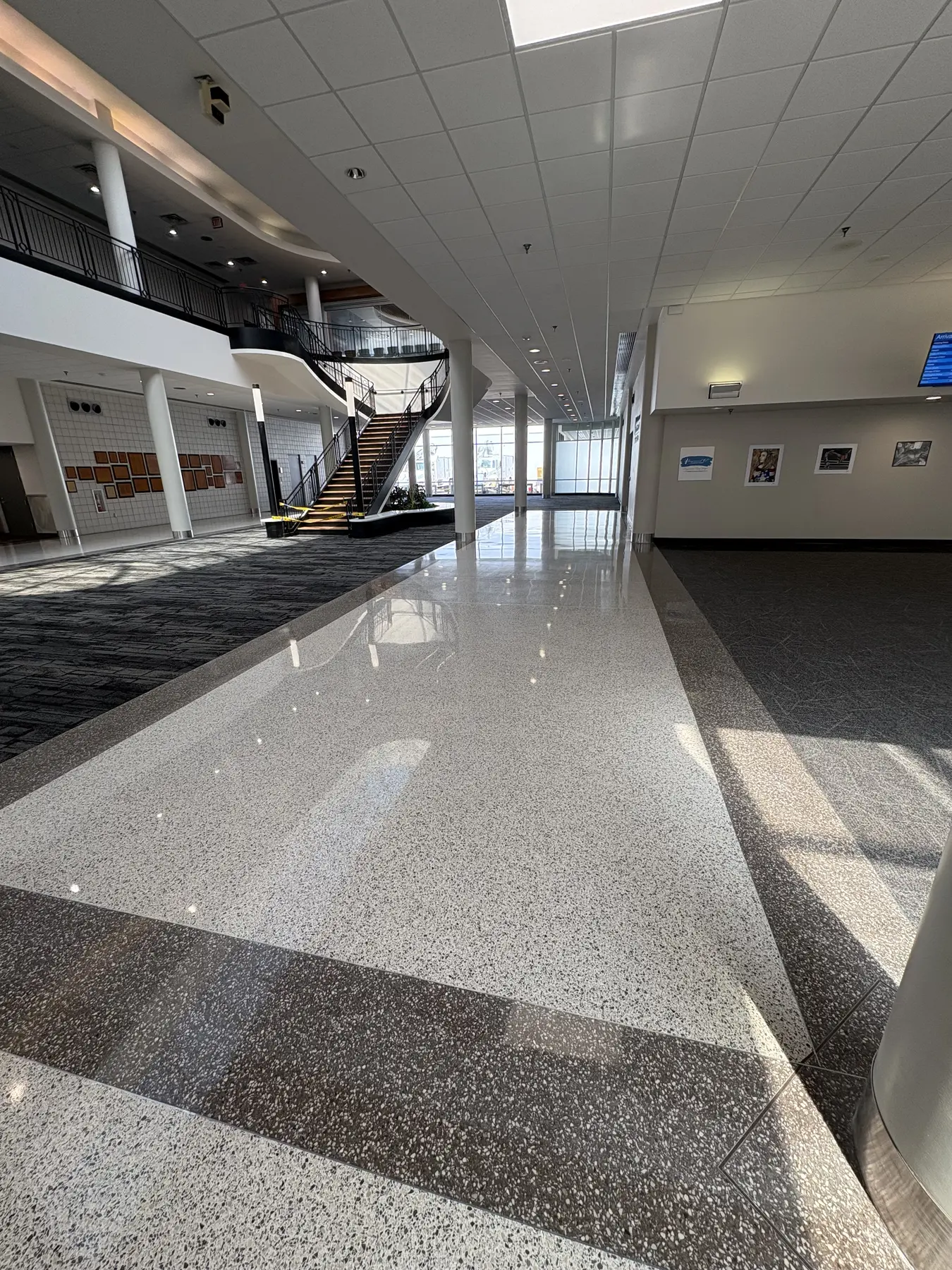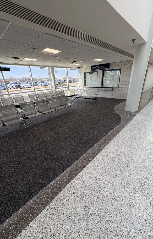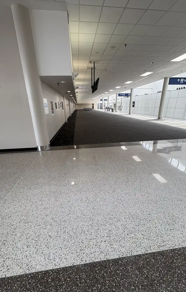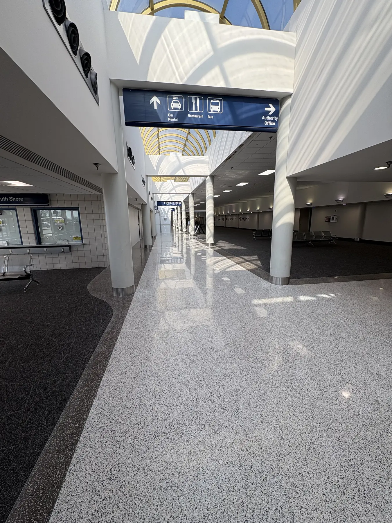 Our team replaced 13,500 SF of flooring, installing a beautiful mix of new terrazzo and carpet tile. This was a phased construction project, requiring close coordination with multiple trade partners and airport personnel. Throughout the process, we prioritized keeping access routes clear for the traveling public and ensuring minimal disruption.